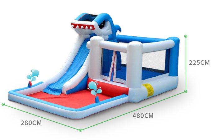 El tobogán inflable Big Shark es un estilo de tobogán inflable popular en la comparación de precios al aire libre de 2022. El color de la apariencia es principalmente azul marino, y la forma de dibujos animados de animales en el interior es muy linda, vívida y realista, y los ingresos operativos regresan rápidamente. ¡Los niños prefieren jugar!