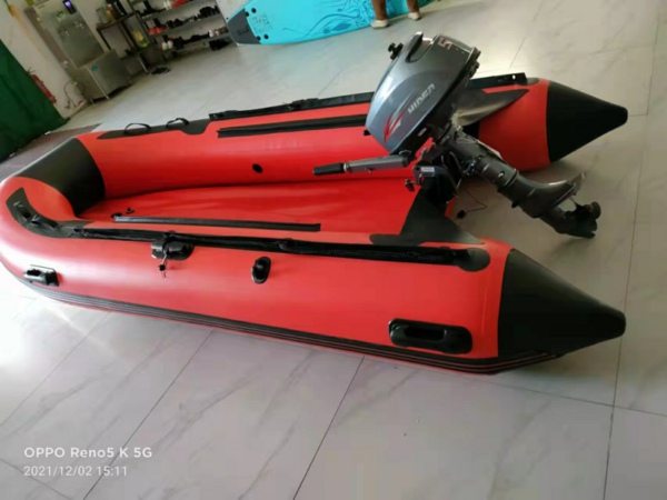 Este pequeño bote deportivo inflable y balsa de agua está hecho con materia prima con tejido de punto de gota de doble pared recubierto de PVC de alta calidad, material fuerte, impermeable, a prueba de aceite, a prueba de sol, seguro y antienvejecimiento, y buen pegamento hecho a mano. El diseño científico perfecto y razonable de varias cámaras y la excelente tecnología hacen que el producto tenga una buena seguridad y comodidad de conducción.